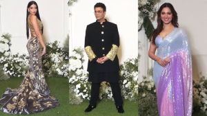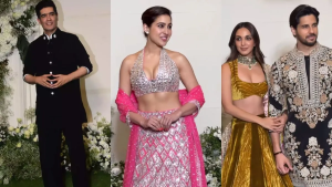 उनके अलावा पूजा हेगड़े और फातिमा सना शेख भी लाल साड़ी पहने नजर आईं। वहीं दूसरी ओर पूजा अपनी क्यूटनेस से सभी के दिलों पर राज कर रही थी। जान्हवी गोल्डन कलर के लहंगे में दिखीं तो अंशुला ने लाइट गोल्डन कलर की साड़ी पहनकर पार्टी में शिरकत की। इसके साथ ही एकता कपूर, इब्राहिम अली खान भी पार्टी में शामिल हुए।