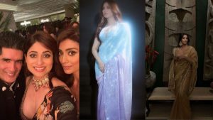 अंशुला और जान्हवी ने साथ में जमकर पोज दिए। नोरा फतेही शाइनिंग ग्रे कलर की ड्रेस में पहुंचीं। अभिनेत्री सोनम कपूर गोल्डन कलर की स्टाइलिश साड़ी में पहुंची। अभिनेत्री शमिता शेट्टी ब्लैक कलर की साड़ी पहने नजर आईं।