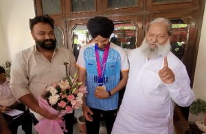 अंबाला (एकता): गृह एवं स्वास्थ्य मंत्री अनिल विज ने चीन के हांगझोउ एशियाई खेलों में शूटिंग प्रतियोगिता में अंबाला के शूटर सरबजीत सिंह द्वारा स्वर्ण पदक जीतने पर बधाई दी। बता दें कि सरबजीत सिंह ने अनिल विज का आशीर्वाद लिया। सूत्रों के मुताबिक उन्होंने हार्दिक शुभकामनाएं देते हुए कहा कि अपने Voluntary Fund से 50 हजार रुपए देने की घोषणा की।