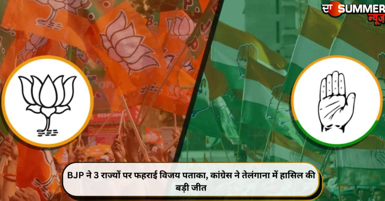 BJP ने 3 राज्यों पर फहराई विजय पताका, कांग्रेस ने तेलंगाना में हासिल की बड़ी जीत