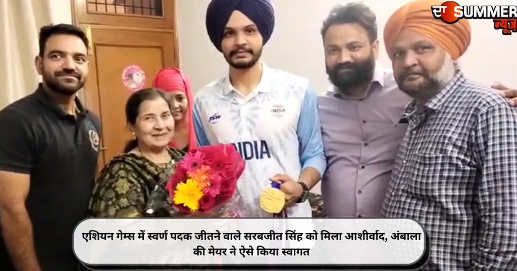 अंबाला (एकता): अंबाला जिले में गांव धीन के रहने वाले किसान के बेटे सरबजीत सिंह ने चीन के हांगझोउ में एशियन गेम्स में शूटिंग में स्वर्ण पदक जीता था। जिसके चलते अंबाला की मेयर शक्तिरानी शर्मा ने सरबजीत सिंह को आशीर्वाद दिया और उसका मुंह मीठा करवाया। सूत्रों के मुताबिक मेयर ने खिलाड़ी को हार्दिक शुभकामनाएं देते हुए कहा कि उसने एशियाई खेलों में स्वर्ण और रजत पदक जीतकर देश व अंबाला का नाम ऊंचा किया। मेयर ने खिलाड़ी सरबजीत सिंह के पिता जितेंद्र सिंह व उनके परिवार को भी बधाई दी। इस दौरान उसने सरबजोत सिंह ओर उनके पिता जितेंद्र सिंह को मिठाई खिलाकर मुंह मिट्ठा करवाया।