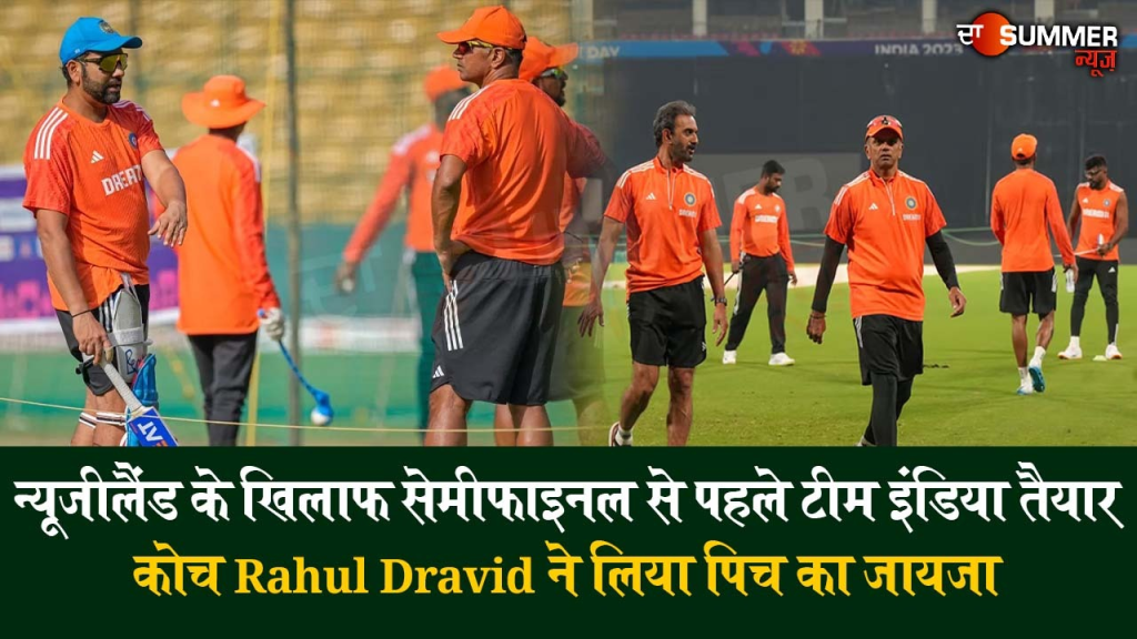 मुंबई (एकता): भारत और न्यूजीलैंड के बीच World Cup 2023 के सेमीफाइनल मुकाबले से पहले टीम इंडिया पूरी तरह से तैयार है। इसी बीच टीम इंडिया के दिग्गज बल्लेबाज और हेड कोच राहुल द्रविड़ ने पिच का जायजा लिया। बता दें कि दोनों ही टीमों ने अपने-अपने स्तर पर तैयारियां शुरू कर दी हैं। सूत्रों के मुताबिक न्यूजीलैंड के खिलाड़ियों ने 3 घंटे से भी ज्यादा समय तक अभ्यास सेशन में हिस्सा लिया।