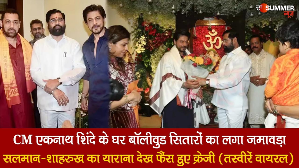 मुंबई (एकता): एकनाथ शिंदे महाराष्ट्र राज्य सरकार में कैबिनेट मंत्री हैं। बता दें कि एकनाथ शिंदे के घर गणपति बप्पा की स्थापना हुई थी। जिसके चलते बॉलीवुड सितारों का जमावड़ा लग गया। इस मौके पर शाहरुख खान और सलमान खान को एक साथ बप्पा के दर्शन करने पहुंचे देख फैंस क्रेजी हो उठे। हालांकि दोनों ने एक साथ गणपति बप्पा के दर्शन किए और उनकी आरती उतारी।