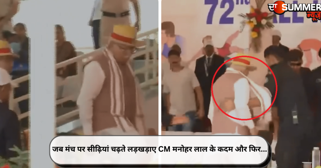 करनाल (एकता): हरियाणा के मुख्यमंत्री मनोहर लाल के करनाल दौरे पर पहुंचते ही मंच पर सीढ़ियां चढ़ते कदम लड़खड़ा गए। बता दें कि करनाल में मधुबन पुलिस अकादमी में जब दीक्षांत समारोह में शामिल होने के लिए मंच की तरफ बढ़े तो वह लड़खड़ा गए।